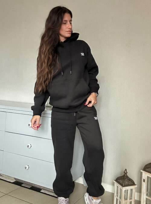 Buzo color negro modelo BROOKLYN con capucha, tiras regúlales con punteras metálicas y bolsillo frontal. este buzo esta confeccionado con nuestra tela KNIT-X importada (POLIESTER y ALGODON) por fuera y por dentro se encuentra forrado en textil DOBLE FRIZA, super abrigados, pesados.