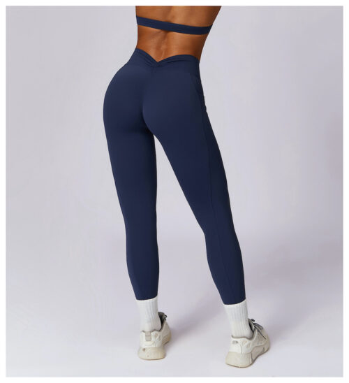calza caicos color azul, está confeccionada con nuestra tela importada exclusiva con fibra LYCRA® XTRALIFE™ y tecnología SOLARMAX®, que bloquea el 97,5% de los rayos UV linea seamless. Este es un diseño de calza tiro alto clásico, corte en v parte trasera tiene costuras planas y reforzadas para una mejor sujeción y soporte. contiene bolsillos en ambos laterales, textura suave al tacto