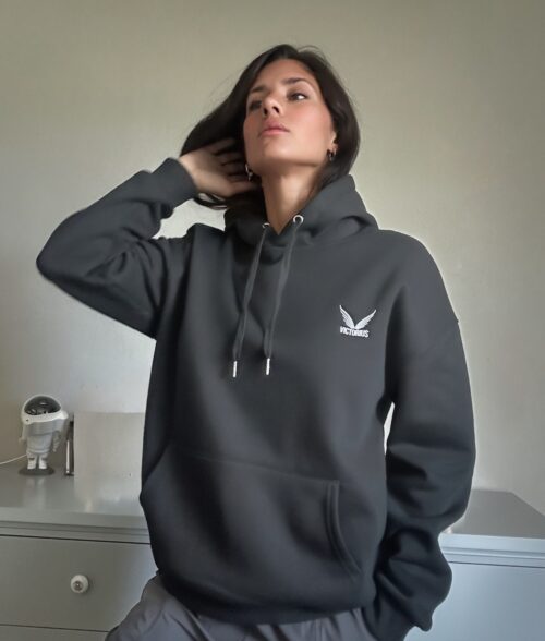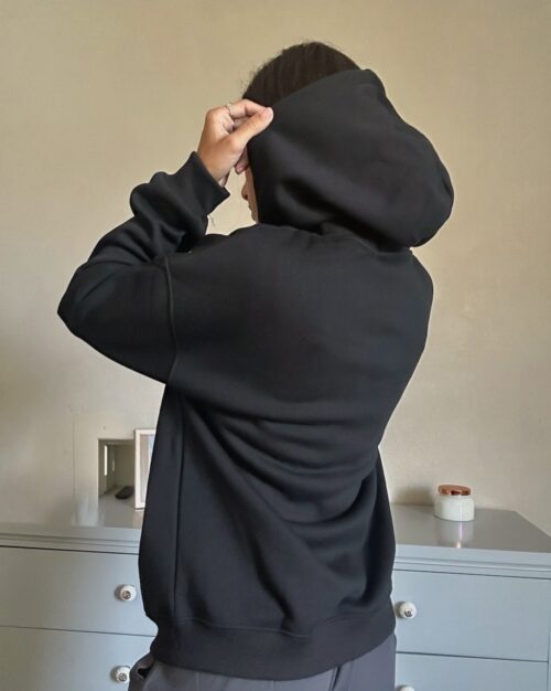 Buzo color negro modelo NEW YORK con capucha, tiras regúlales con punteras y ojales metálicos y bolsillo frontal. este buzo esta confeccionado con nuestra tela KNIT-X importada (POLIESTER y ALGODON) por fuera y por dentro se encuentra forrado en textil terciopelo, simil pana en brazos, cuerpo capucha y bolsillo. para este invierno es el modelo elegido de victorius.