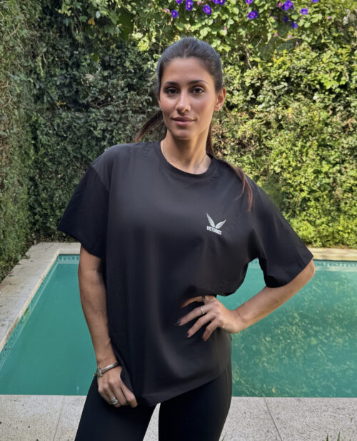 Remera OVER NEGRO es fresca, suave y suelta, confeccionada con nuestra tela importada algodón soft + spandex. ideal para sesiones de running, crossfit o para completar tu look urban perfecto. Combina esta prenda básica relajada con unas coloridas bikers shorts o unos leggings modernos.