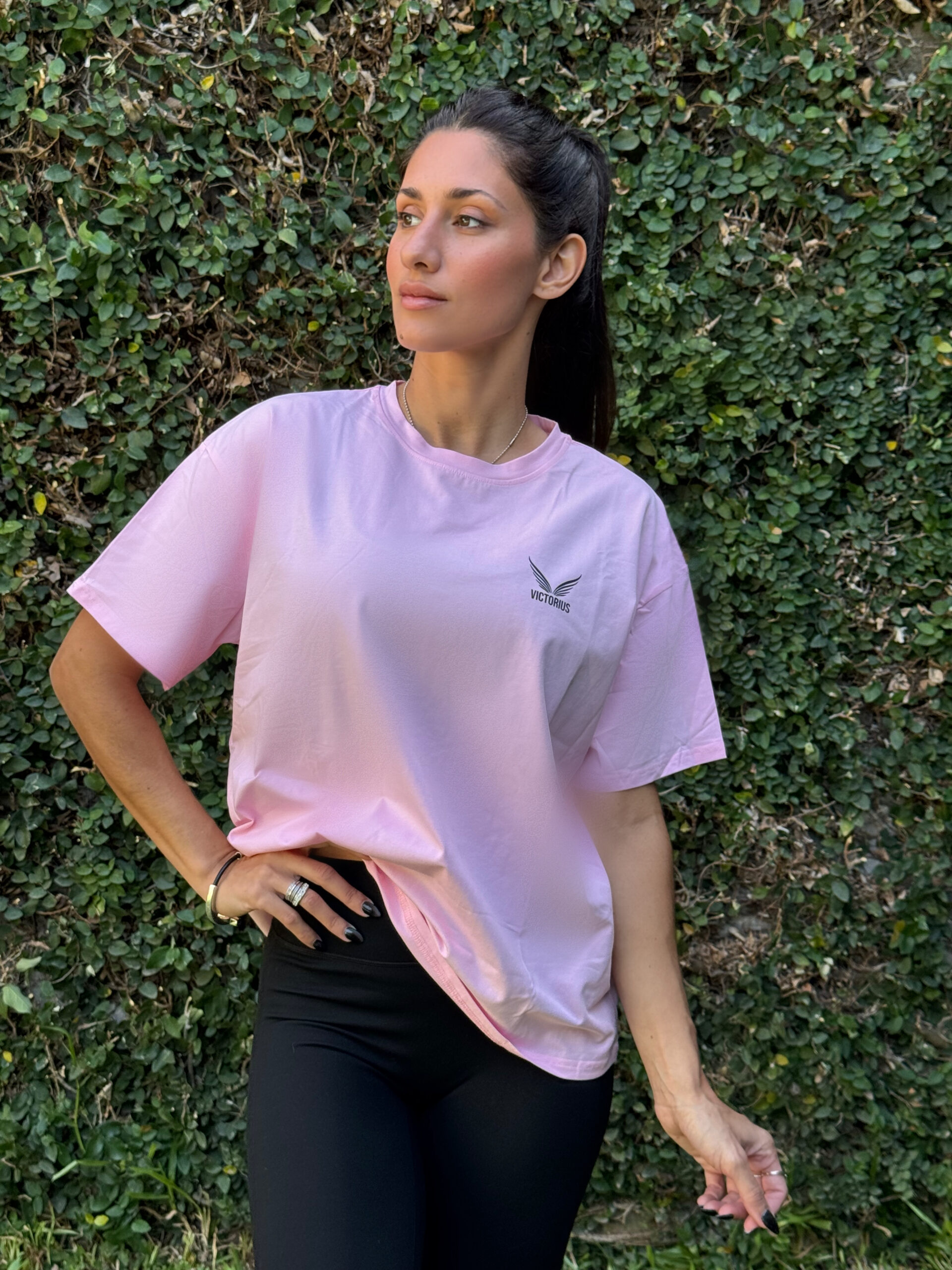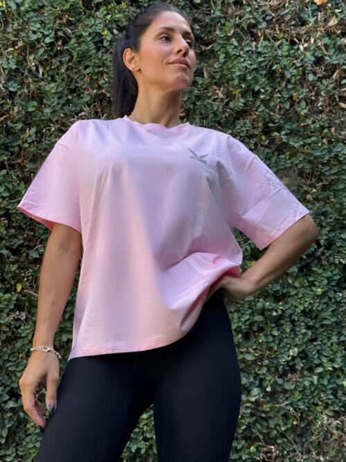 Remera OVER ROSA es fresca, suave y suelta, confeccionada con nuestra tela importada algodón soft + spandex. ideal para sesiones de running, crossfit o para completar tu look urban perfecto. Combina esta prenda básica relajada con unas coloridas bikers shorts o unos leggings modernos.