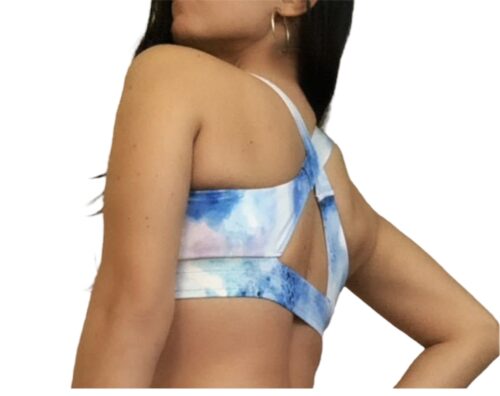 Top confeccionado con nuestra tela exclusiva LAGUNA importada de Brasil, en varios colores, dibujos a mano digitalizados con la mayor calidad del mercado brasilero. Detalle cruzado en espalda, costuras planas y reforzadas para un mayor confort.