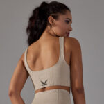TOP GLEN BEIGE está confeccionada con nuestra tela importada exclusiva con fibra LYCRA® XTRALIFE™ y tecnología SOLARMAX® que bloquea el 97,5% de los rayos UV, top texturado grueso con tasas soft removibles, la calidad de este top es inigualable.