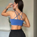Top melody color azul, confeccionada con nuestra tela versátil importada poliamida y elastano, muy buen soporte y sujeción, tela super suave al tacto. tasas soft removibles, doble bretel y espalda cruzada con cintura ancha, en la parte frontal posee un escalón en v con corte de princesa para dar el toque final de sutileza y glamour.