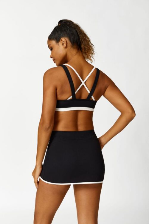 top VALENCIA, confeccionado con nuestra tela importada NYLON, POLYAMIDA CON ELASTANO, tiene tiras cruzadas en la espalda que le da un gran soporte para deportes de alto impacto, posee tasas soft gruesas removibles. Alisado y levantamiento de tejido Airlift